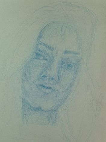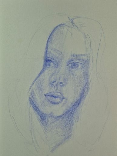 I have returned to this reference a number of times, using different mediums, and today I thought about the original painting I did, and how I might make the same painting, the same portrait, in a more expressive style, in a more *me* style.