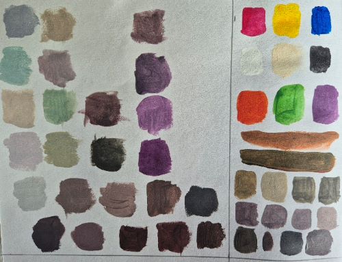 I went back to the colours I had used and played in a more structured way with mixing. A lot of things you hear about colour mixing are about how to avoid mud, and while that’s useful, mud can also be interesting, fun and exactly what you need.