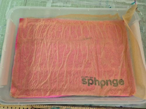 For the stay-wet part I used a Sphonge that I had bought for something else but it didn’t work out. I think any cloth or sponge would do. The sphonge cloth thing is very absorbent, so holds water, and it’s nice and flat. Paper towels would probably work too.