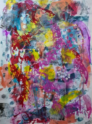 This is a very large sheet of paper, so large that it’s really too large for either of my studio benches. It’s from the pack of Snowdon paper I bought with a gift voucher, and I am having a lot of messy fun.