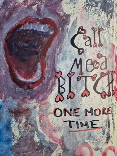 I do like what I did with the mouth and the paint, tho – using a page from another sketchbook as a reference. Sometimes what feels like a failed sketch abandoned half way turns out to be fodder for something else.