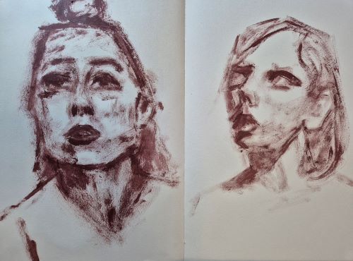 I eventually got stuck in, starting with my twenty minute graphite sketch opener, which just confirmed how tight I was feeling. Then I got started with my mini portrait.