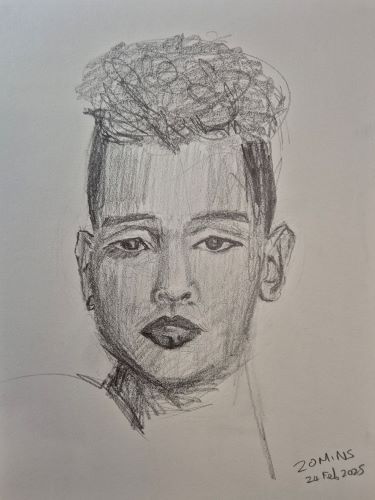 I started the art day with a twenty minute timed sketch, and this is feeling good as a way to start the day. I’m probably going to use that practise as a first sketch for my 100 Day one hour portraits, it’s a good way to get a feel for the shapes before starting with the oil paint. I’m not invested in the goodness or badness of these sketches, they are a way to get my hand moving and my eye/brain looking.