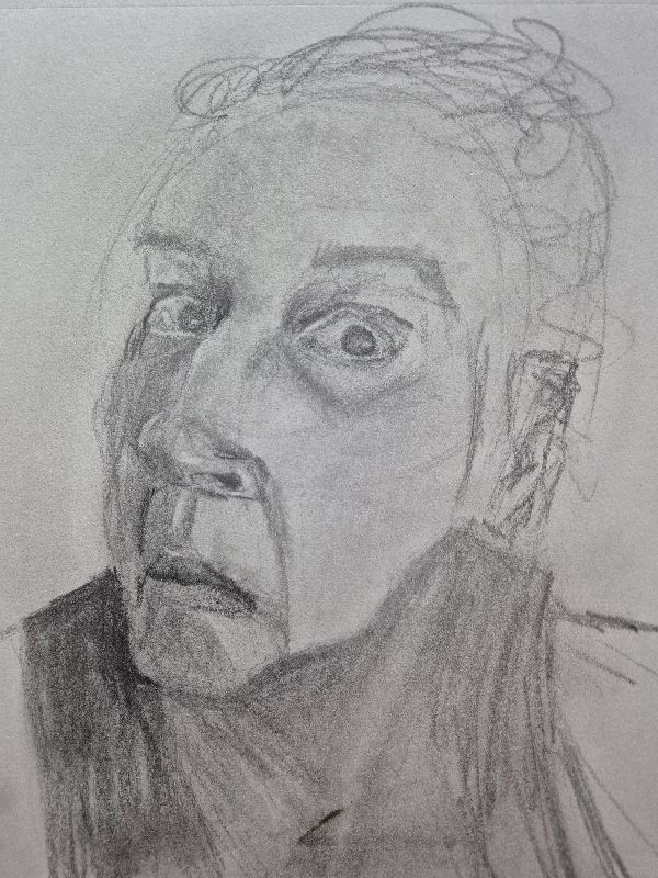 I spent a short age trying to choose a reference, but nothing was speaking to me, so I found some selfies I had taken a while back where I was messing with different expressions but hadn’t tried painting them.