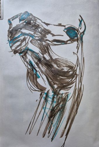 The day was not a total downer, tho, as a wee box of new art supplies arrived to cheer me up. I got two more of those chonky Liquitex paint markers in quinacridone crimson and raw umber. The above horsie was sketched using the raw umber and cobalt turquoise.