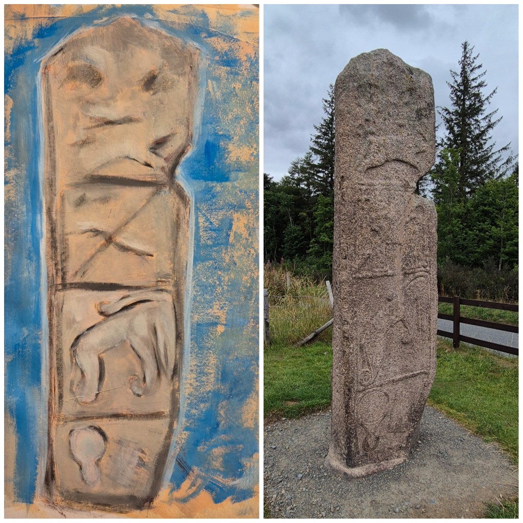 We have been out on adventures all day, and it’s after 9pm. I’m knackered, but just enough spoons in the drawer for a very quick sketch of one of the places we visited today, the Maiden Stone.