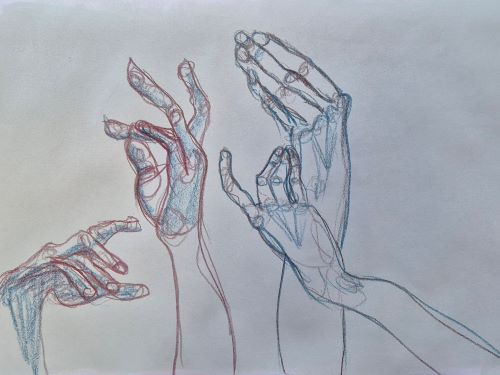 Another day of meditative hand studies. I seem to have moved into this A3 sketchbook without much resistance, and things are cooking.