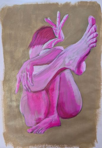 She’s all fingers and toes, and if the paint was quinacridone rose I could make a poem, but I didn’t think of that, so here she is in quinacridone magenta, which is about as much to die for as this juicy pose.