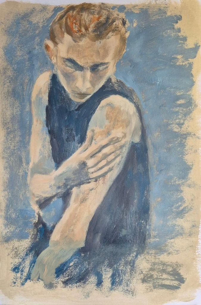The second painting is in the larger sketchbook, and the ground is the sand colour ground I mixed from Tri-Art Sludge and some gesso. Both are painted in acrylic using my shitty brushes.