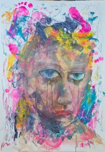 When I put the page on the easel, I saw a face in the messy paint, so decided to go with that. It’s a fun practise, and a nice change from having a reference. I’m going to let this sheet be a kind of messy play sheet for a while, and see where it ends up.