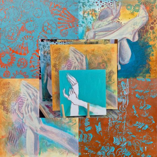 Painting-wise I worked on four canvases from my hands studies project, just adding paint layers, or ink layers, and trying things out.