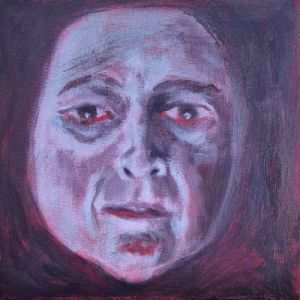 This is not a self-portrait, it is just using my face as a reference, but going off on a tangent, playing with distortion, and the weird shadows I was getting from the low slung winter sun outside. I took my glasses off for much of the painting, which was great for getting loose values in.