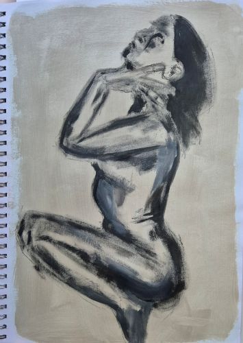 Travel day today, and I have my four-legged lodger for the night, so a quick turn re-acquainting myself with my studio. Compressed charcoal and clear gesso and marvelling at how strange the easel feels after a week away.