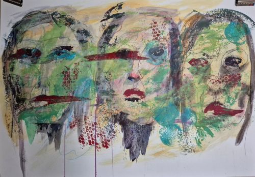 I put this A1 page of blind-contour drawings back up on the easel and messed about. Disrupt, Disrupt, Disrupt. They are much more interesting to me now.