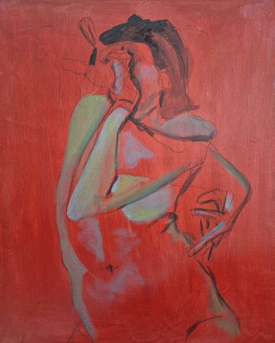 When I moved onto the second canvas, which I started a few days back, I found it really interesting to be moving from realism to slightly abstract. I specifically drew this figure in a slightly abstracted way, and as I was putting down some paint to see what colours I want to go with, I had to check myself for trying to correct the lines and bring them back to the reference. If nothing else, that’s good for the brain.