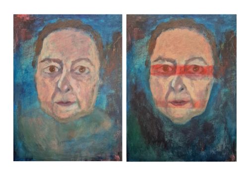 I painted this self portrait using the same reference photo, and the idea was to try the same thing but with a painting instead of a drawing. I am fascinated with the resistance I am having to this. It’s a completely different scenario to the loose drawings.