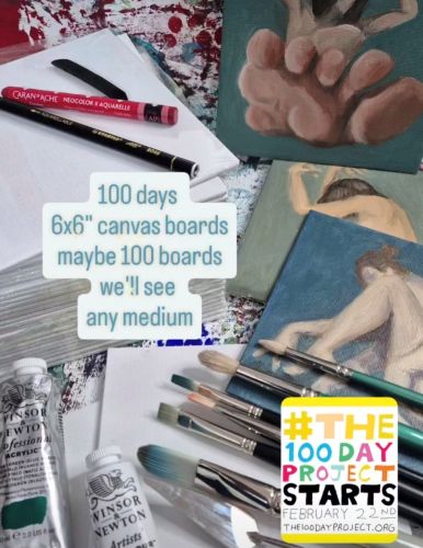 My challenge is 100 days of painting mini 6×6″ canvases. I don’t know if there will be 100 finished canvases, I’m not making that the goal, just 100 days where I pick up on of these and work on it. I’m not choosing a specific medium because that was too constricting last year. I want this to add to my practice, not become the only practice.