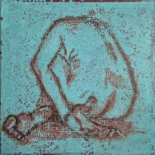Once that was transferred to the canvas, and dry, I repeated the whole process with a sepia Conté pencil. This gave a bit more definition.