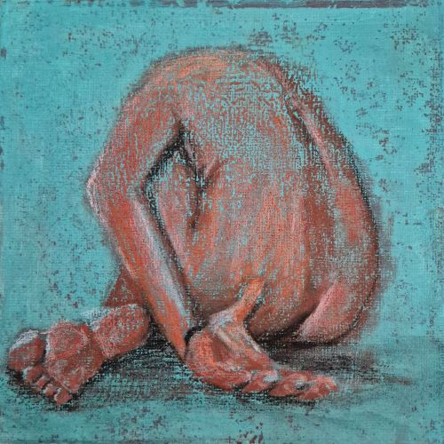 The texture from the layers of clear gesso is interesting, and it gives a good ground for finishing this one up with Conté pencils. I say finishing this one, but I used workable fixative to fix it, and I get extra points for using fixative to fix a drawing on the same day I did the drawing. Still stinks, tho.