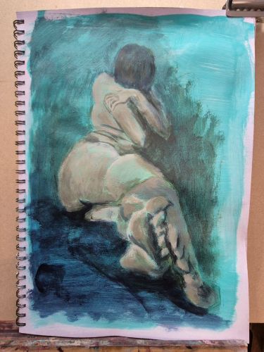 I haven’t posted my sketchbook explorations for a while, so here’s a page I worked on today. The delicious tangle of toes and shadows is definitely not there, yet, but it’s close.