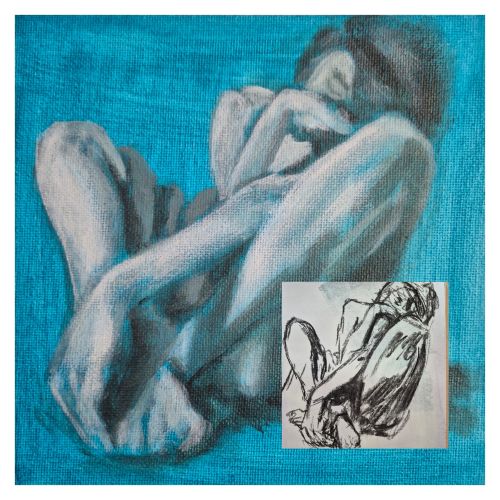 Today I warmed up with a fast charcoal drawing in my sketchbook, then painted the mini canvas, and that was a good session.