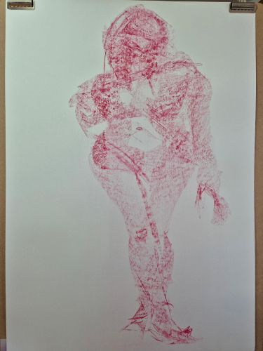 For today’s share I chose this large figure drawing. It’s on A1 paper that is quite smooth, and I used the long side of a soft pastel for the gestural drawing. Lots of fun, especially after a 6×6 tiny canvas.