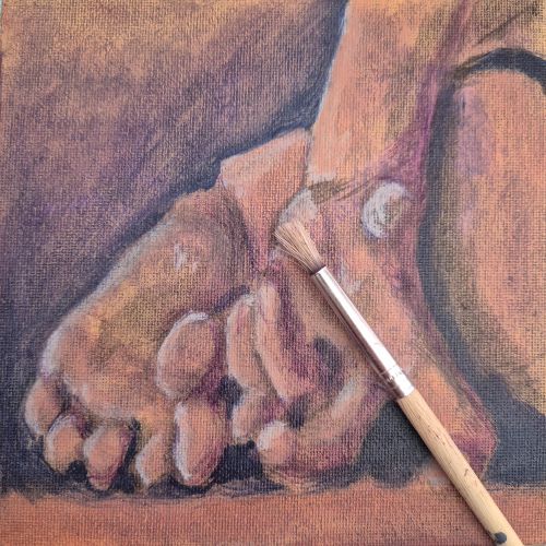 This is handy if the figure you have sketched on the canvas board is one of the most borked figure drawing you have done, and that’s how this canvas started. The end result is an entirely different pose where hand and eye were communicating at more acceptable levels.